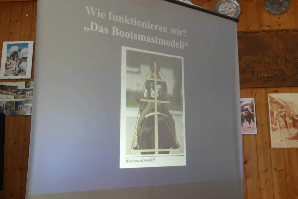 So lernten alle Teilnehmerinnen das unser Körper aus 3 Zahnrädern besteht, die beim Reiten ineinander greifen müssen oder das wir nach einem Bootsmastmodell funktionieren.